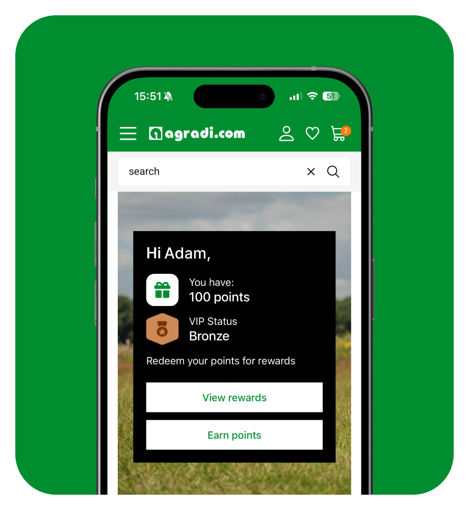 Andries and the Agradi team wanted a seamless customer experience focused loyalty program where they are able to reward their loyal customers with points that they can redeem for free, branded products and gifts.